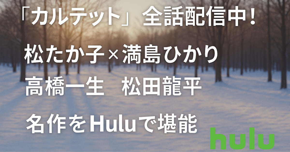 そんな『カルテット』は現在 Huluで全話視聴可能。この記事では、あらすじ・キャスト・見どころを徹底解説し、なぜ今観るべき作品なのかをお伝えします。