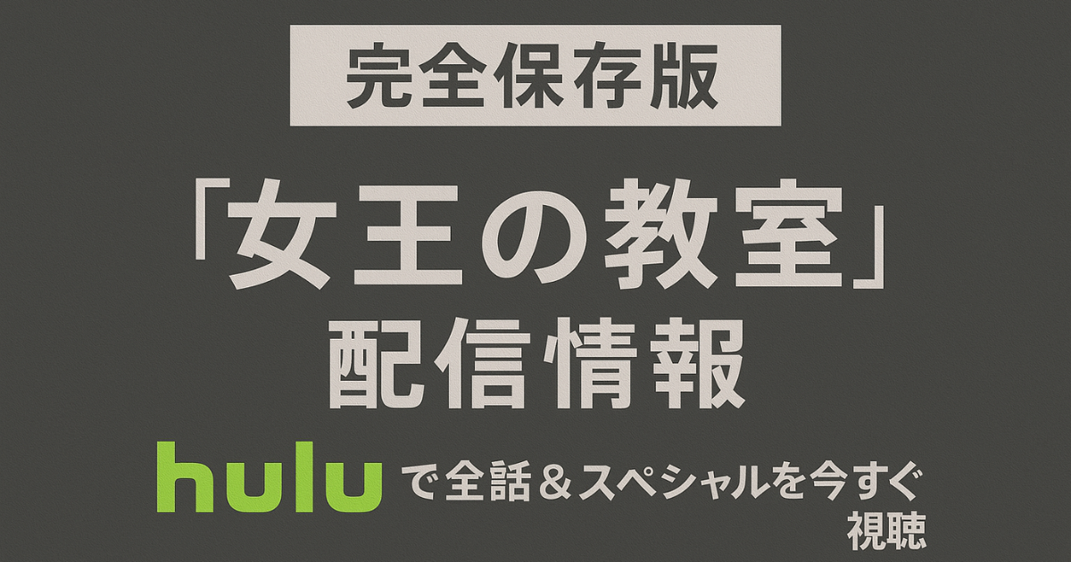 - Hulu限定ポイント:先行配信+オリジナル『DASADA〜もうひとつの教室〜』で制作裏話・企画を深掘り。