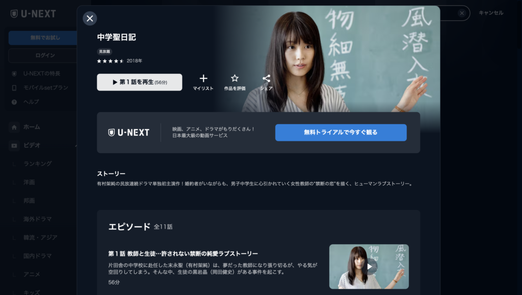 さらに『中学聖日記』以外のドラマも多数扱っているので、ほかに観たいドラマがないかも探してみましょう。