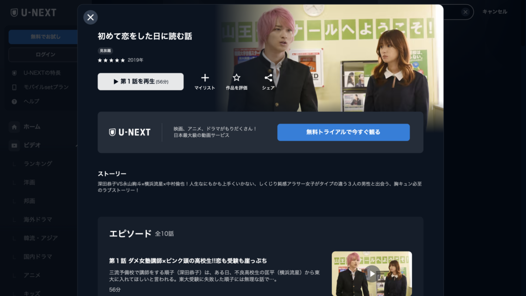 このようにU-NEXTを使えば、『初めて恋をした日に読む話』を今すぐ視聴することが可能。
