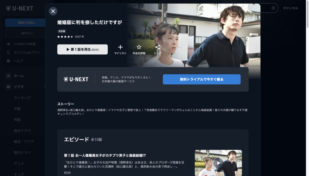U-NEXTで「婚姻届に判を捺しただけですが」を見るのは簡単