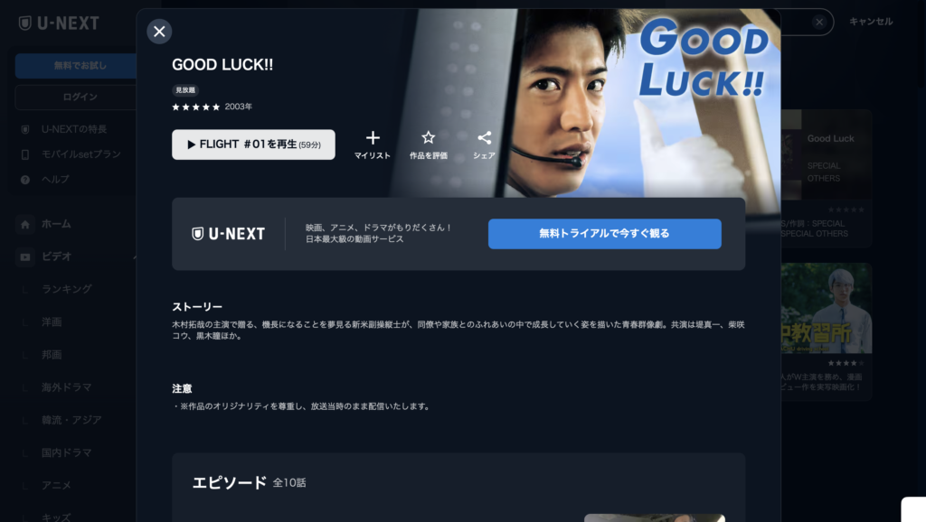 このようにU-NEXTを使えば、『GOOD LUCK』を今すぐ視聴することが可能。